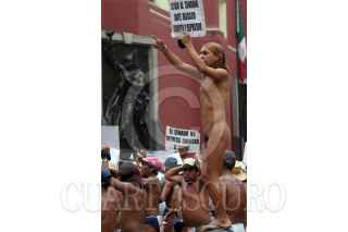 MÉXICO, D.F., 27JUNIO2007.- La organización de los 400 Pueblos que se caracterizan por protestar desnudos organizaron un mitin en contra del senador Dante Delgado afuera del Senado de la República. FOTO: MOISÉS PABLO/CUARTOSCURO.COM