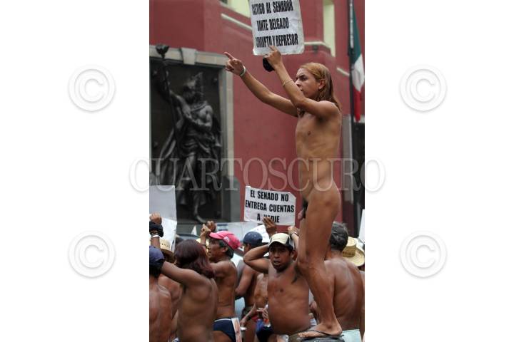 MÉXICO, D.F., 27JUNIO2007.- La organización de los 400 Pueblos que se caracterizan por protestar desnudos organizaron un mitin en contra del senador Dante Delgado afuera del Senado de la República. FOTO: MOISÉS PABLO/CUARTOSCURO.COM