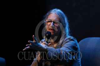 GUADALAJARA, JALISCO, 29FEBRERO2024.- Como si fuera un cometa que viaja por las estrellas, Patti Smith aterrizó en una Guadalajara cuyos sonidos la cautivaron y donde plasmó su protesta para dejar una estela de reflexión ante aquellos que disfrutan de su arte. Así fue su paso por nuestra ciudad, pero también dejó su arte en el Conjunto Santander de Artes Escénica (CSAE) como parte de la Feria Internacional de la Música 2024 (FIM GDL), donde mediante una experiencia inmersiva invita a los curiosos a reflexionar sobre la naturaleza mientras sonidos e imágenes envuelven los sentidos. FOTO: UNIVERSIDAD DE GUADALAJARA/CUARTOSCURO.COM