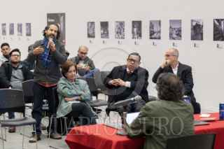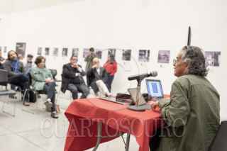 TIJUANA BAJA CALIFORNIA, 29FEBRERO2024.- El maestro Pedro Valtierra, fundador de la agencia de fotoperiodismo Cuartoscuro, compartió una conferencia magistral sobre el trabajo de la fotógrafa Mariana Yampolsky. El evento organizado por la Universidad Iberoamericana, fue llevado a cabo la noche del pasado jueves 29 de febrero en el Centro Estatal de Arte en Tijuana, donde se expuso una galería de fotografías tomadas por Yampolsky en la ciudad fronteriza. Valtierra relato momentos que pasó a lado de la fotógrafa, quien a pesar de ser de origen estadounidense, ella lo negaba diciendo “yo soy mexicana, no gringa” manifestando el gran cariño que le tenía México. Durante la charla el maestro maestro, destacó los trabajos de Mariana sobre las comunidades mas alejadas, la pasión y el gusto que tenía por la arquitectura, confesando el deseo por haberse “grabado” mas con ella, expresado “es importante tomarnos fotos con nuestros amigos” FOTO: OMAR MARTÍNEZ/CUARTOSCURO.COM