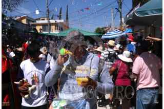 TEPALCINGO, MORELOS, 01MARZO2024.- Un hombre vende un juguete que lanza burbujas en la Feria del Tercer Viernes de Cuaresma. Esta feria es considerada la más importante del estado por su antigüedad y el impacto social, cultural y económico. Desde el siglo XVII, hay datos de su realización como feria popular del tipo tianquiztli o mercado prehispánico. Se realiza en honor de Jesús de Nazareno y el lugar es un importante santuario que es visitado por miles de peregrinos de varios estados de la república. En los ocho días que dura la feria la gran plaza se extiende desde el atrio de la iglesia, la presidencia municipal y todas las calles adyacentes hasta la entrada de la carretera se cubre de puestos entoldados, que venden los más variados productos. Hay juegos mecánicos y pirotécnicos, así como venta artesanal y comida típica. Esta feria es visitada por más de 50 mil personas y es considerada como la cuarta feria religiosa más importante del país. FOTO: MARGARITO PÉREZ RETANA/CUARTOSCURO.COM