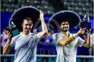 ACAPULCO, GUERRERO, 02MARZO2024.- Los tenistas Hugo Nys y Jan Zielinski, vencieron en la final de dobles a la pareja conformada por el mexicano Santiago González y Skupski, en el Abierto Méxicano de Tenis Acapulco 2024. FOTO: CARLOS ALBERTO CARBAJAL/CUARTOSCURO.COM