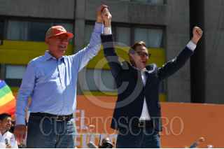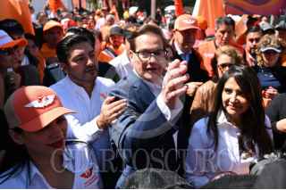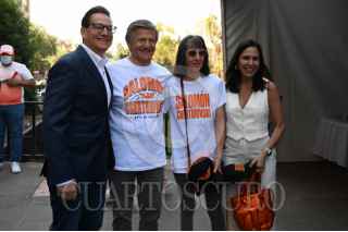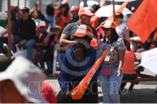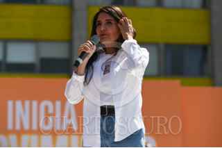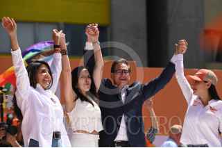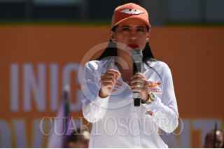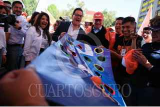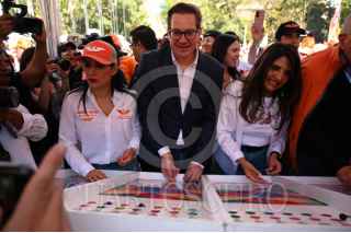 CIUDAD DE MÉXICO, 03MARZO2024.- Salomón Chertorivski, Sandra Cuevas y Alejandra Barrales,juegan a las canicas en la Feria Fosfo Fosfo, proyecto de campaña de Movimiento Ciudadano. FOTO: DANIEL AUGUSTO/ CUARTOSCURO.COM