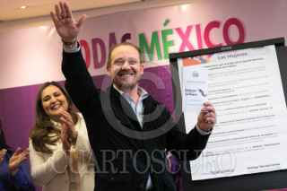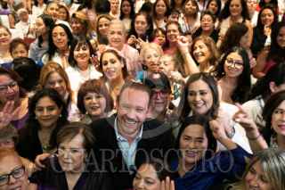CIUDAD DE MÉXICO, 03MARZO2024.- Santiago Taboada, candidato a la Jefatura de Gobierno de la coalición Fuerza y Corazón por México, sostuvo un encuentro con mujeres en el WTC, en donde diversas organizaciones presentaron la agenda política "El México que queremos Las Mujeres", ahí el panista firma una carta compromiso. En el encuentro estuvieron presentes Desirée Navarro y Patricia Olamendi. FOTO: MOISÉS PABLO/CUARTOSCURO.COM