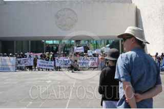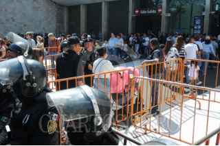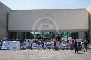 CIUDAD DE MÉXICO, 03MARZO2024.- Estudiantes, profesores y trabajadores de la ENAH intentaron tomar este día las instalaciones del Museo Nacional de Antropología para exigir recursos para realizar actividades académicas, además de transparentar su presupuesto y mejorar las condiciones laborales. Los manifestantes o pudieron ingresar al recinto debido a que se encontraba custodiado por elementos policiacos. FOTO: DANIEL AUGUSTO /CUARTOSCURO.COM