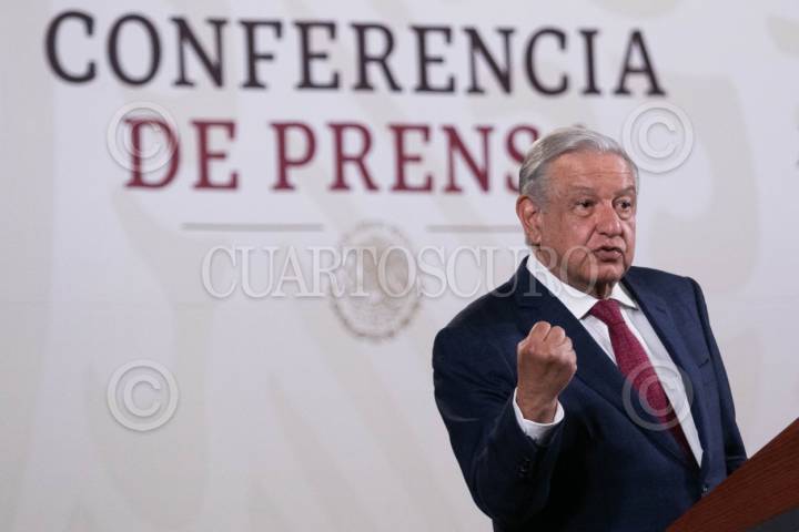 CIUDAD DE MÉXICO, 04MARZO2024.- Andrés Manuel López Obrador, Presidente de México, encabezó su tradicional mañanera en Palacio Nacional, en la cual inauguró su sección de historia, esto ante la veda electoral, ya que el Ejecutivo no puede hablar sobre temas de obras o campañas presidenciales. Insistió en su idea de que Estados Unidos envié la estatua de la libertad en México, porque México es un país libre a diferencia de nuestro vecino del norte. FOTO: MOISÉS PABLO/CUARTOSCURO.COM
