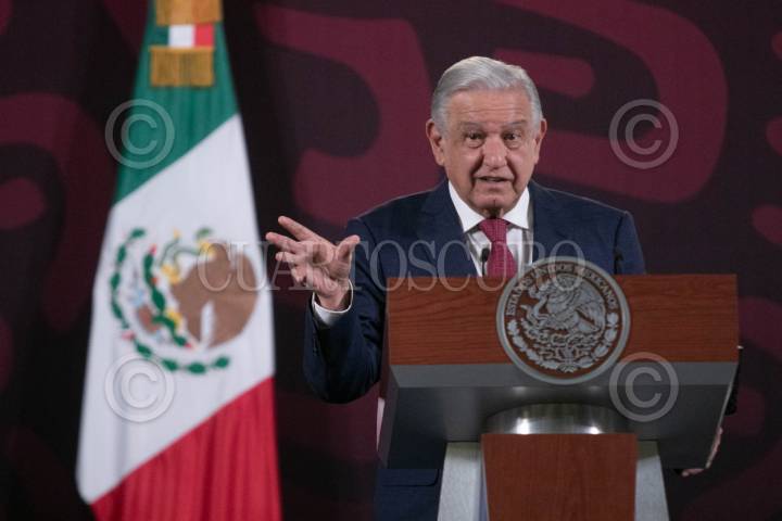 CIUDAD DE MÉXICO, 04MARZO2024.- Andrés Manuel López Obrador, Presidente de México, encabezó su tradicional mañanera en Palacio Nacional, en la cual inauguró su sección de historia, esto ante la veda electoral, ya que el Ejecutivo no puede hablar sobre temas de obras o campañas presidenciales. Insistió en su idea de que Estados Unidos envié la estatua de la libertad en México, porque México es un país libre a diferencia de nuestro vecino del norte. FOTO: MOISÉS PABLO/CUARTOSCURO.COM