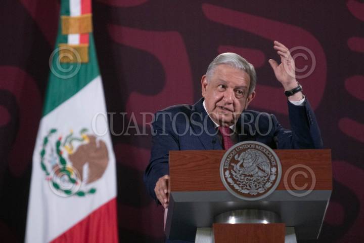 CIUDAD DE MÉXICO, 04MARZO2024.- Andrés Manuel López Obrador, Presidente de México, encabezó su tradicional mañanera en Palacio Nacional, en la cual inauguró su sección de historia, esto ante la veda electoral, ya que el Ejecutivo no puede hablar sobre temas de obras o campañas presidenciales. Insistió en su idea de que Estados Unidos envié la estatua de la libertad en México, porque México es un país libre a diferencia de nuestro vecino del norte. FOTO: MOISÉS PABLO/CUARTOSCURO.COM