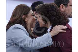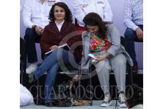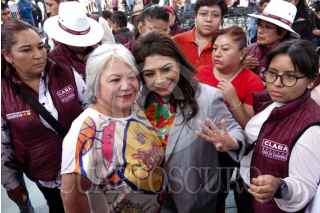 CIUDAD DE MÉXICO, 04MARZI2924.- La sonidera Lupita la Cigarrita, integrante de las Musas Sonideras, y Clara Brugada, candidata a Jefa de Gobierno por la coalición "Sigamos haciendo Historia en la Ciudad de México", durante el evento Vamos Juntas y Juntos por el Plan C, realizado en el Monumento a la Revolución. FOTO: GRACIELA LÓPEZ /CUARTOSCURO.COM