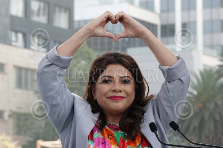 CIUDAD DE MÉXICO, 04MARZI2924.- Clara Brugada, candidata a Jefa de Gobierno por la coalición "Sigamos haciendo Historia en la Ciudad de México", durante el evento Vamos Juntas y Juntos por el Plan C, realizado en el Monumento a la Revolución. FOTO: GRACIELA LÓPEZ /CUARTOSCURO.COM