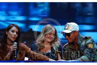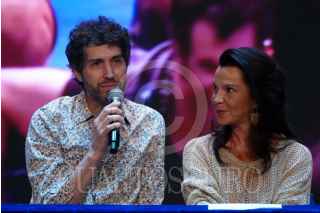 CIUDAD DE MÉXICO, 04MARZO2024.- Los cantantes Benny Ibarra y Mariana Garza durante la conferencia de prensa de la obra musical Vaselina Timbiriche, realizada en el Centro Cultural Teatro 1. FOTO: GRACIELA LÓPEZ /CUARTOSCURO.COM