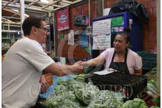 CIUDAD DE MÉXICO, 05MARZO2023.- Salomón Chertoriviski, candidato de Movimiento Ciudadano para la jefatura de Gobierno de la Ciudad de México realizó un recorrido por el mercado Río Blanco con el fin de compartir volantes con algunas de sus propuestas de campaña. FOTO: ANDREA MURCIA /CUARTOSCURO.COM