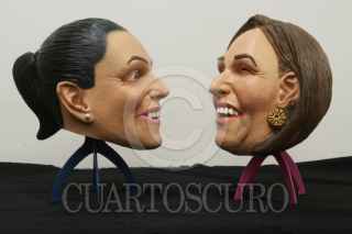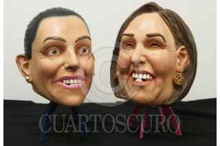 JIUTEPEC, MORELOS, 05MARZO2024.- Mascaras de látex de las candidatas a la Presidencia de la República, Claudia Sheinbaum Pardo, del Movimiento de Regeneración Nacional, y Xóchitl Gálvez del Frente Opositor, hechas en la fábrica Caretas REV, ubicada en este municipio. Esta empresa, con más de 70 años de operación, elabora máscaras para Halloween, de personajes de historietas y películas con licencia y creaciones propias que exporta a Estados Unidos. También elabora máscaras de personajes políticos, como son las de los expresidentes Carlos Salinas (la cual se volvió muy popular), Vicente Fox, Felipe Calderón, Enrique Peña Nieto y Andrés Manuel López Obrador (la más vendida). La empresa aprovecha el auge de las campañas electorales, para vender este tipo de máscaras ya que después es más difícil colocarlas. En una primera producción salieron mil piezas de Claudia Sheinbaum y 800 de Xóchitl Gálvez. FOTO: MARGARITO PÉREZ RETANA/CUARTOSCURO.COM