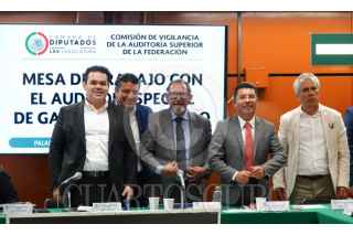 CIUDAD DE MÉXICO, 05MARZO2024.- El diputado Pablo Guillermo Ángulo Briceño, presidente de la Comisión de la Auditoría Superior de la Federación, y Emilio Barriga Delgado, Auditor del Gasto Personalizado de la ASF, durante el término de la Mesa de Trabajo de la Auditoría Especial de Gasto Federealizado, realizada en la Cámara de Diputados. FOTO: GRACIELA LÓPEZ /CUARTOSCURO.COM