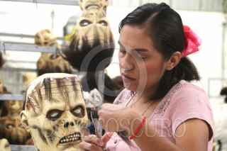 JIUTEPEC, MORELOS, 05MARZO2024.- Un joven trabaja en los detalles de una máscara de látex de un personaje de una historieta en la fábrica Caretas REV. Esta empresa, con más de 70 años de operación, elabora máscaras para Halloween, de personajes de historietas y películas con licencia y creaciones propias que exporta a Estados Unidos. Empleando a más de 400 trabajadores (este número puede aumentar hasta 800 trabajadores en ciertas temporadas), produce tres millones de unidades anuales, se considera la más grande fábrica de su tipo en el país y Latinoamérica. FOTO: MARGARITO PÉREZ RETANA/CUARTOSCURO.COM