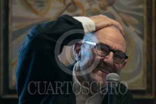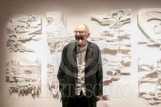 CIUDAD DE MÉXICO, 05MARZO2024.- El arquitecto estadounidense Thom Mayne presentó su exposición: Thom Mayne: Interconexiones Amplificadas, en el Museo Franz Mayer. El ganador del premio Pritzker 2005 señaló que en esta muestra lo que verán es su proceso creativo-experimental que hace antes de proyectar un edificio o un complejo habitacional, y que para él es un mostrar un aspecto muy privado de si mismo. Fue acompañado por Giovana Jaspersen, director del Franz Mayer. FOTO: MOISÉS PABLO/CUARTOSCURO.COM