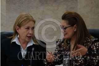CIUDAD DE MÉXICO, 05MARZO2024.- La diputada Gabriela Sodi Miranda, presidenta de la Comisión de Atención a Grupos Vulnerables, y la diputada Ana Karina Rojo Pimentel, presidenta de la Comisión de Bienestar, conversaron durante el Foro de Diálogo Nacional Reformas Constitucionales para el Bienestar, realizado en la Cámara de Diputados. FOTO: GRACIELA LÓPEZ /CUARTOSCURO.COM