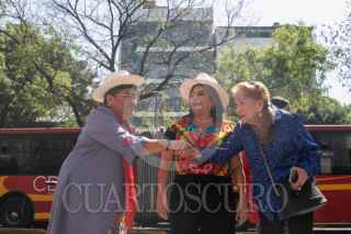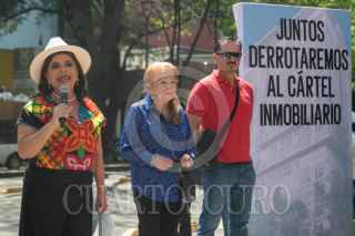 CIUDAD DE MÉXICO, 06MARZO2024.- Clara Brugada, candidata a la Jefatura de Gobierno por la Coalición Sigamos Haciendo Historia, ofreció una rueda de prensa para señalar que continuará combatiendo al llamado Cártel Inmobiliario que operaba en la alcaldía Benito Juárez por varios funcionarios de esta demarcación. La rueda de prensa la ofreció frente al inmueble marcado con el número 1774 de Insurgentes Sur, el cuál señaló fue recuperado por la fiscalía en el marco de estás investigaciones. La acompaño Ernestina Godoy, quién busca una senaduría y anteriormente fue fiscal encargada de investigar este caso de corrupción inmobiliaria. FOTO: MOISÉS PABLO/CUARTOSCURO.COM