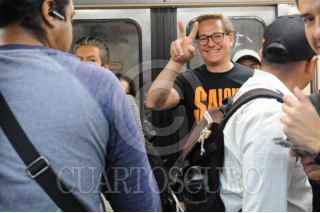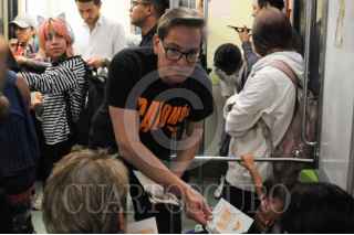 CIUDAD DE MÉXICO, 06MARZO2024. - Salomón Chertorivski, candidato de MC a la jefatura de gobierno, dialoga con usuarios del metro durante un acto de campaña. FOTO: DANIEL AUGUSTO /CUARTOSCURO.COM