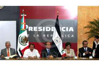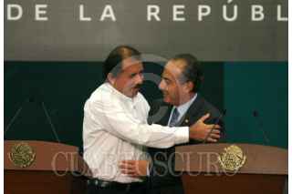 MÉXICO, D.F., 28JUNIO2007.- El presidente de Nicaragua Daniel Ortega Saavedra, se reunió con el jefe del ejecutivo en la residencia oficiald de Los Pinos. FOTO: MOISÉS PABLO/CUARTOSCURO.COM