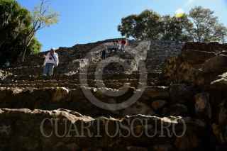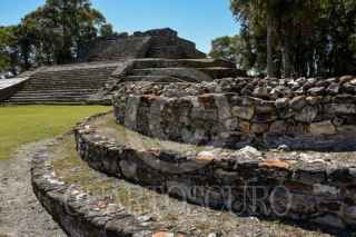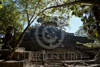 CANDELARIA, CAMPECHE, 06MARZO2024.- La enigmática zona arqueológica de El Tigre, conocida también por su antiguo nombre maya, Itzamkánac, se sitúa en el suroeste del estado de Campeche, dentro del municipio de Candelaria. Este sitio histórico sirvió como capital del cacicazgo maya de Acalán, un área que las crónicas del siglo XVI destacan como el mercado público más significativo del mundo maya. Sus impresionantes mascarones de estuco se llevan el protagonismo, mostrando características distintivas del período Preclásico Tardío. Los mascarones representan rostros humanos adornados con lo que parece ser gorros o cascos, además de presentar sobre las orejeras lazos o nudos entrelazados, símbolos del poder real atribuidos al Halach Uinic. Estas figuras, según interpretaciones de historiadores, podrían ser representaciones de los ancestros del linaje real del sitio, evocando la profunda conexión con sus raíces y el poderío de su civilización. Algunos investigadores sugieren que El Tigre pudo haber sido el escenario donde se llevó a cabo el sacrificio de Cuauhtémoc, el último tlatoani de México-Tenochtitlan. FOTO: MICHAEL BALAM/CUARTOSCURO.COM