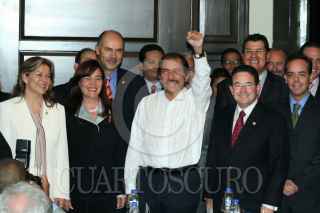 MÉXICO, D.F. 28JUNIO2007.- Daniel Ortega, presidente de Nicaragua asistió a la Cámara de Senadores. Francisco Arrollo Vieyra, vicepresidente de la mesa directiva, los senadores Yeidckol Polevnsky y Alejandro Chanona lo recibieron. FOTO: PAOLA HIDALGO/CUARTOSCURO.COM