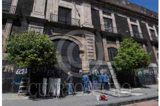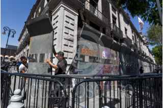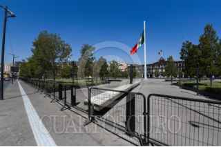 TOLUCA, ESTADO DE MÉXICO, 07MARZO2024.- Previo a las marchas por el Día Internacional de la Mujer de este 8M edificios como la Cámara de Diputados local, Palacio de Gobierno, el Poder Judicial, la Plaza de los Mártires, el Parque de la Ciencia, el Ayuntamiento de Toluca, Catedral y la Iglesia de la Santa Veracruz y el Teatro Morelos ya lucen con vallas, ya que por estos lugares pasará el contingente de mujeres este viernes. FOTO: CRISANTA ESPINOSA AGUILAR /CUARTOSCURO.COM