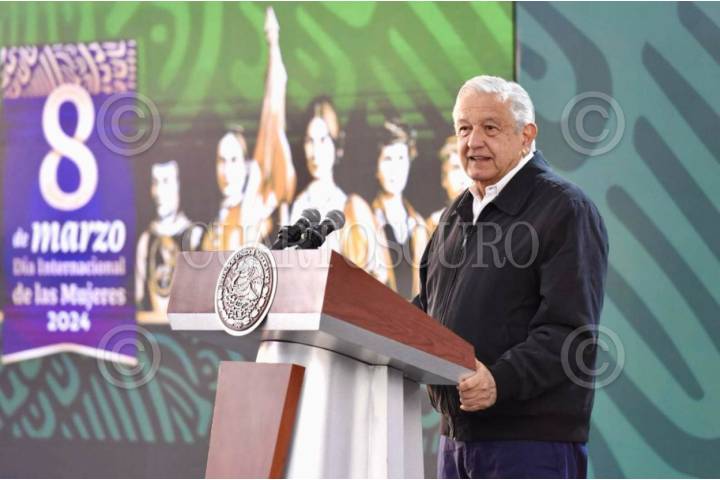 CIUDAD DE MÉXICO, 08MARZO2024.- Andrés Manuel López Obrador, Presidente de México, encabezó su tradicional mañanera desde Morelia, ahí habló sobre la conmemoración del Día Internacional de la Mujer. Lo acompañaron Alfredo Ramírez Bedolla, Luis María Alcalde Luján, Rosa Icela Rodriguez, Luis Cresencio Sandoval, Alicia Bárcena, y José Rafael Ojeda Durán. FOTO: PRESIDENCIA/CUARTOSCURO.CO, ,M
