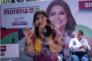 CIUDAD DE MÉXICO, 08MARZO2024.- Clara Brugada, candidata a la jefatura de Gobierno por parte de la Coalición Sigamos Haciendo Historia, encabezó la presentación del Sistema Público Ciudadano en la colonia Lomas de Sotelo, de la alcaldía Miguel Hidalgo. FOTO: PEDRO ANZA /CUARTOSCURO.COM