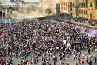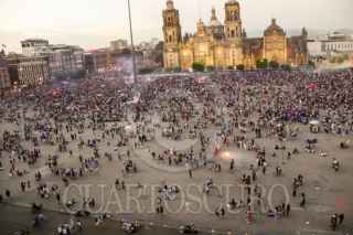 CIUDAD DE MÉXICO. 08MARZO2024.- Mujeres integrantes del bloque negro continúan con su protesta en el Zócalo Capitalino, después de la marcha del 8M. FOTO: VICTORIA VALTIERRA/CUARTOSCURO.COM