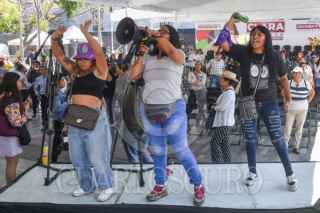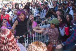 CIUDAD DE MÉXICO, 08MARZO2024.- Un grupo de mujeres feministas protestaron e impidieron la realización de un mitin político en la explanada de Bellas Artes, en consigna de sufrir violencia económica por parte del gobierno capital al impedirles colocar la "mercadita feminista". FOTO: MARIO JASSO/CUARTOSCURO.COM