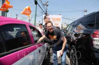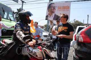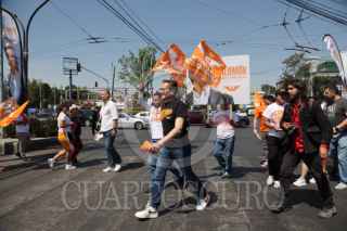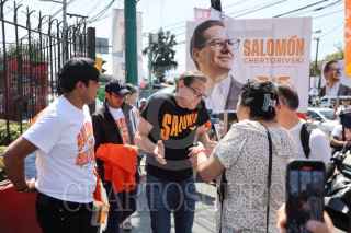 CIUDAD DE MÉXICO, 09MARZO2024. Salomón Chertorivski, candidato a la jefatura de Gobierno de la CDMX por el partido político MC, reparte propaganda en el crucero de Av. Universidad y Miguel Ángel de Quevedo. FOTO: EDGAR NEGRETE LIRA/CUARTOSCURO.COM