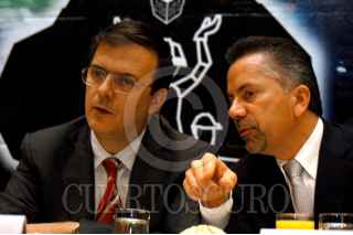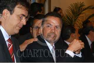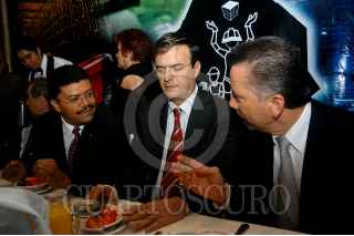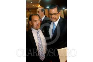 MÉXICO D.F. 29JUNIO2007.-Joel Ortega, Secretarío de Seguridad Pública del D.F. acompañado de José Muñoz Soria delegado de la demarcación Cuauhtemoc a la salida del desayuno en comemoración del "Día del Ingeniero" organizado por la cumunidad de Ingenieros de la Ciudad de México. FOTO: GUILLERMO PEREA/CUARTOSCURO.COM