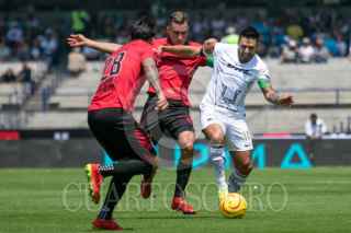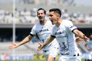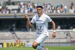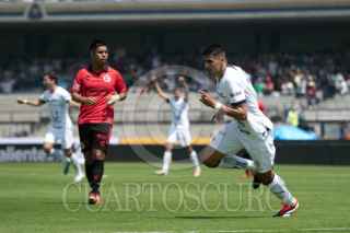 CIUDAD DE MÉXICO, 10MARZO024.- Guillermo Martínez de Pumas festeja su anotación ante el Tijuana, partido disputado en el Estadio Olímpico Universitario. FOTO: MOISÉS PABLO/CUARTOSCURO.COM