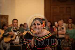 CIUDAD DE MÉXICO, 10MARZO2024.- Se despidió, en el Complejo Cultural Los Pinos, la exposición "Que te vaya bonito", homenaje al cantautor mexicano, José Alfredo Jiménez, la cual exhibió fotografías y artículos personales de quien en vida entonara la canción de la cual la exhibición tomó el nombre. En el evento estuvieron presentes Paloma Jiménez, hija del cantautor, la cantante María Elena Leal, hija de Lola Beltrán, así como la agrupación musical "Mariachis Los Gavilanes". FOTO: PEDRO ANZA /CUARTOSCURO.COM