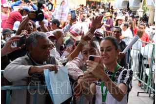 TEHUACÁN, PUEBLA, Claudia Sheinbaum, candidata presidencial de Morena,se toma fotografías con sus simpatizantes. FOTO: DANIEL AUGUSTO/ CUARTOSCURO.COM