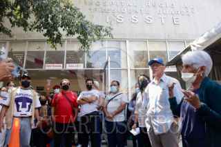 OAXACA DE JUÁREZ, OAXACA, 10MARZO2024.- Derechohabientes y personal médico del Hospital Regional “Presidente Juárez” del Instituto de Seguridad y Servicios Sociales de los Trabajadores del Estado (ISSSTE) ubicado en la capital de Oaxaca, se manifestaron por falta de agua potable en las instalaciones médicas, lo que impide la atención adecuada de pacientes. Los inconformes acusaron que ni los baños cuentan con agua lo que representa un foco de infección; además el personal médico dijo que no se tiene agua para lavarse las manos, por lo que desde hace días la administración emitió un comunicado sobre medidas para mitigar el nulo abasto de agua, sin embargo no les han dicho cuándo se contará con suministro. FOTO: CAROLINA JIMÉNEZ/CUARTOSCURO.COM