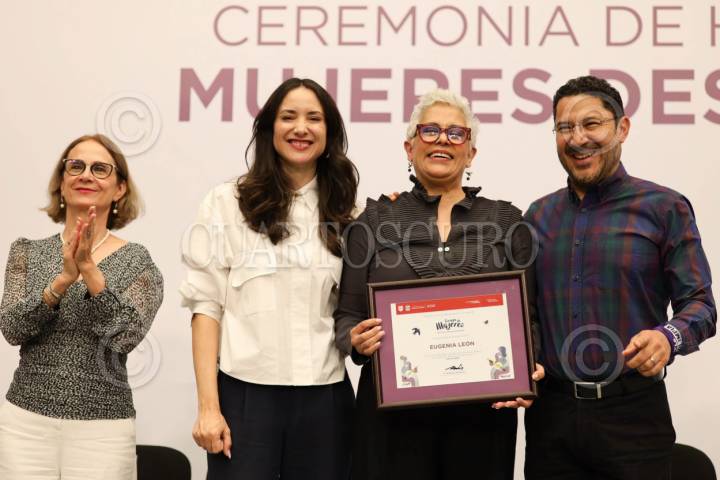 CIUDAD DE MÉXICO, 10MARZO2024.- Claudia Curiel, secretaria de Cultura, y Martí Batres, Jefe de Gobierno, encabezaron la ceremonia en donde se entregaron reconocimientos a "Mujeres Destacadas". En la imagen la cantante Eugenia León recibió esta distinción. FOTO: PRENSA CIUDAD DE MÉXICO/CUARTOSCURO.COM