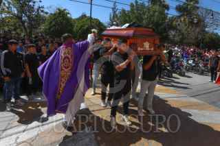 CHILPANCINGO, GUERRERO, 10MARZO2024.- Estudiantes de la Normal Rural “Raúl Isidro Burgos” de Ayotzinapa despidieron con un homenaje a Yanqui Kothan Gómez Peralta, el normalista asesinado el pasado 7 de marzo por policías estatales. La tarde de este sábado la comunidad estudiantil, amigos y familiares del joven de apenas 23 años, se reunieron en la explanada de la Normal Rural de Ayotzinapa ubicada en Tixtla para realizar el homenaje de cuerpo presente, previo al sepelio de Yanqui Kothan. Un líder normalista expresó que el asesinato del joven marca una vez más a la institución, “pero a pesar de eso vamos a seguir luchando, respaldando la memoria de nuestro compañero porque es algo que nos ha caracterizado: el apoyo, la unificación”. FOTO: DASSAEV TÉLLEZ ADAME/CUARTOSCURO.COM