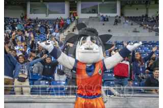 GUADALUPE, NUEVO LEÓN, 10MARZO2024.- La mascota de los Rayados del Monterrey se disfrazó del personaje animado GoKu, en honor a su creador Akira Toriyama, quien falleció recientemente, previo al encuentro con el equipo de Mazatlán FC, en el estadio BBVA, partido correspondiente a la jornada 11 de la Clausura 2024. Marcador Final: Monterrey: 2 - Mazatlán FC: 1 FOTO: GABRIELA PÉREZ MONTIEL / CUARTOSCURO.COM