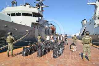 ACAPULCO, GUERRERO, 12MARZO2024.- La Secretaría de Marina a través de la Armada de México informa que, personal de la Décima Segunda Región Naval, con sede en Acapulco, Guerrero, aseguró en días pasados aproximadamente 2,939 (dos mil novecientos treinta y nueve) kilogramos de polvo blanco con características de la cocaína, asimismo detuvo a cinco presuntos trasgresores de la ley, al Sureste de Guerrero; lo anterior en dos acciones diferentes. En la primera acción, durante patrullajes de vigilancia marítima a bordo de una embarcación tipo Defender perteneciente a esta Institución, se localizaron diversos bultos tipo costalillas de color negro flotando en el mar y amarrados unos con otros, aproximadamente a 61 millas náuticas (113 kilómetros) al Sureste del puerto de Acapulco, Guerrero, conteniendo aproximadamente 1,610 (mil seiscientos diez) kilogramos de polvo blanco con características de la cocaína. FOTO: SEMAR/CUARTOSCURO.COM