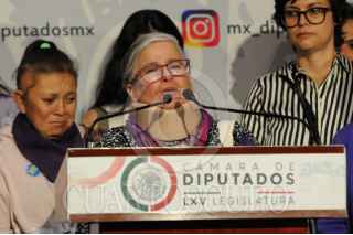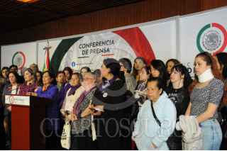 CIUDAD DE MÉXICO, 12MARZO2024.-Una de las mujeres que fue agredida durante la protesta, ofreció unas palabras durante la conferencia. FOTO: DANIEL AUGUSTO / CUARTOSCURO.COM