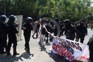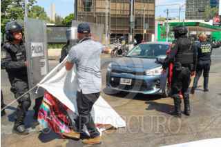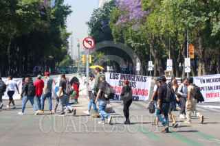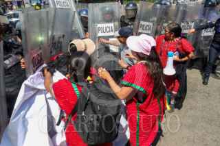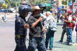 CIUDAD DE MÉXICO, 12MARZO2024.- Integrantes de la comunidad triqui fueron replegados por policías capitalinos luego de que bloquearan las avenidas Reforma e Insurgentes. Los inconformes exigen espacios donde puedan realizar su actividad comercial en el primer cuadro. FOTO: ROGELIO MORALES/CUARTOSCURO.COM