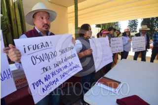 TULA DE ALLENDE, HIDALGO, 14MARZO2024.- Personal sindicalizado del INAH en Hidalgo protestan en la Zona Arqueológica de Tula para exigir la destitución del director del centro INAH en la entidad, Osvaldo Sterpone, por múltiples irregularidades. Exigieron también la reapertura total del museo Jorge R. Acosta, el mantenimiento a esta y otras zonas arqueológicas, así como respeto a los derechos laborales y el cese al hostigamiento laboral. FOTO: FRANCISCO VILLEDA/CUARTOSCURO.COM