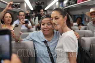 CANCÚN, QUINTANA ROO, 14MARZO2024.- Claudia Sheinbaum, candidata a la Presidencia de la República por la coalición Sigamos Haciendo Historia, usó el Tren Maya para viajar a su gira de campaña en Valladolid. La acompañó Joaquín Díaz Mena, candidato a la gubernatura de Yucatán. FOTO: PRENSA CLAUDIA SHEINBAUM/CUARTOSCURO.COM