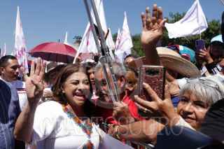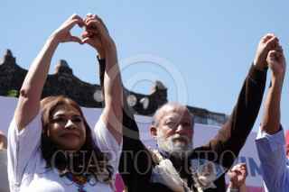 CIUDAD DE MÉXICO, 15MARZO2024.- Clara Brugada, candidata a la jefatura de gobierno por la alianza Morena-PVEM-PT, encabezó una asamblea con simpatizantes en la plaza de las Tres Culturas. La ex alcaldesa de Iztapalapa estuvo acompañada por: Sebastián Ramírez, presidente de Morena en la Ciudad de México; Ernestina Godoy, candidata al senado; Jaime Rello, enlace con movimientos populares de la campaña; FOTO: GALO CAÑAS/CUARTOSCURO.COM