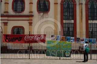 SAN CRISTÓBAL DE LAS CASAS, CHIAPAS, 15MARZO2024.- Sociedad Civil organizada impulsa campaña contra FEMSA Coca Cola quienes están buscando la certificación de la Alliance for Water Stewardship (AWS), por la gestión sustentable del agua y por emplear estrategias y acciones para devolver a la cuenca el agua que extrae. Durante la recabación de firmas se ofrecieron volantes con información de cómo la empresa extrae millones de litros de agua del subsuelo del territorio local y a su vez contamina, no solo la región si no el organismo de millones de personas, siendo Chiapas el territorio que ocupa el primer lugar en el mundo en consumo de Coca-Cola. FOTO: ISABEL MATEOS /CUARTOSCURO.COM