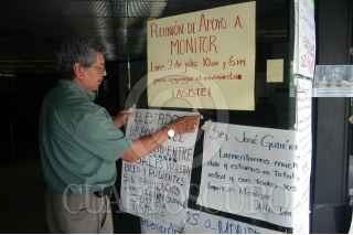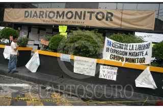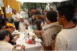 MÉXICO D.F. 03JULIO2007.-Simpatizantes del periodista José Gutierrez Vivo muestran su apoyo con pancartas colocadas a las afueras de las intalaciones del diario Monitor y recolectan firmas para exir que regrese la transmición de su noticiero radiofonico. FOTO: GUILLERMO PEREA/CUARTOSCURO.COM