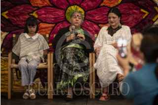CIUDAD DE MÉXICO, 16MARZO2024.- La filósofa y doctora en ciencias físicas, Vandana Shiva, originaria de la India, estuvo presente en el Complejo Cultural Los Pinos, junto con la Secretaria de Cultura, Alejandra Frausto, en donde presidieron el evento "La defensa de las semillas libres y la biodiversidad frente al imperialismo alimentario". FOTO: PEDRO ANZA /CUARTOSCURO.COM