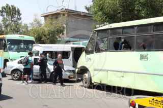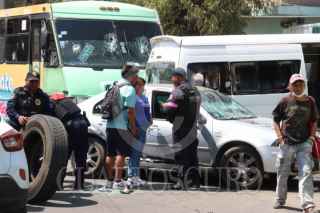 CIUDAD DE MÉXICO, 16MARZO2024.- Enfrentamiento entre rutas de camión entre la 54 y la 51 en Tláhuac deja cuatro heridos y cuatro detenidos tras quedar dañados dos camiones una combi y un vehículo particular de la ruta 51,esto en eje 10 y Antonio Aldama en la colonia Santa catarina en la alcaldía Tláhuac. FOTO: ROGELIO MORALES/CUARTOSCURO.COM